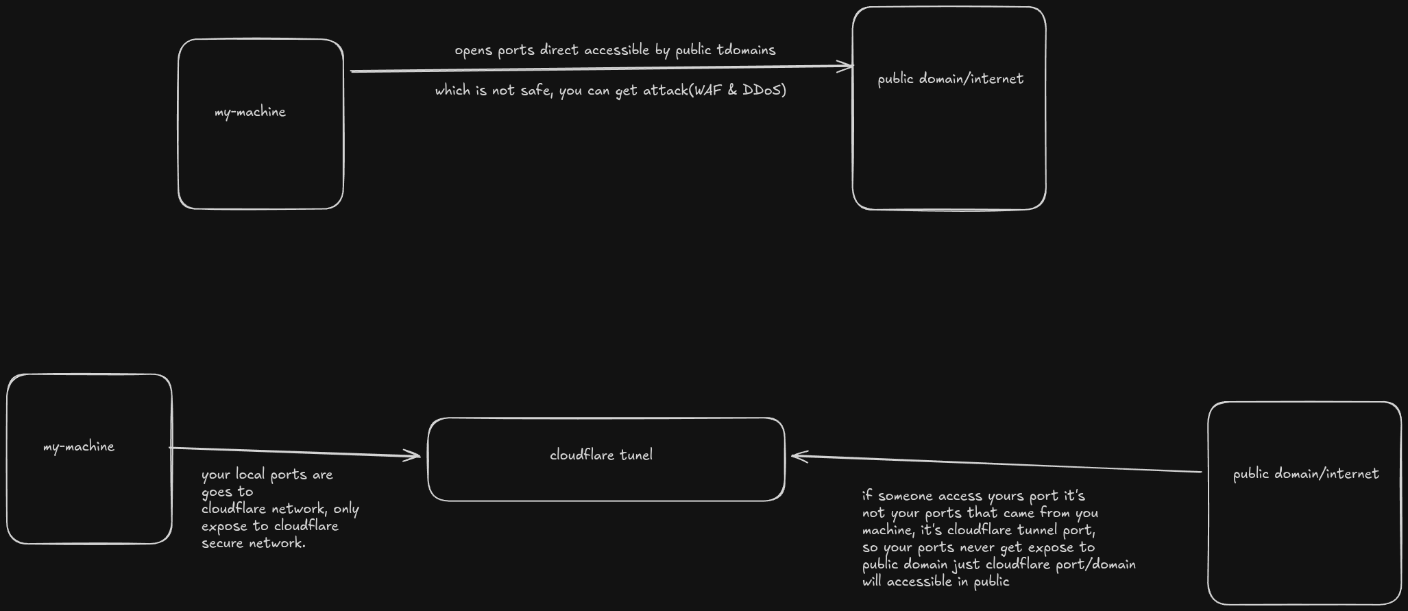 A quick mental model for how Cloudflare Tunnel works and why it’s safer than port forwarding.